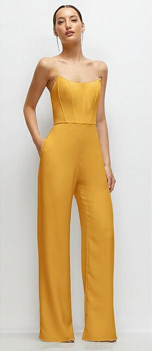 Strapless Cat-Eye Corset Crepe Wedding Jumpsuit in NYC yellow