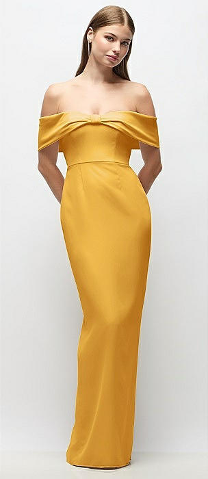 Off-the-Shoulder Crepe Column Maxi Dress with Bow-Pinch Detail in NYC yellow