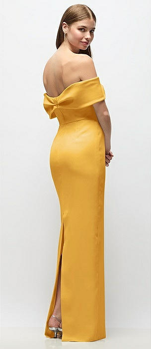 Off-the-Shoulder Criss Cross Back Trumpet Gown in NYC yellow