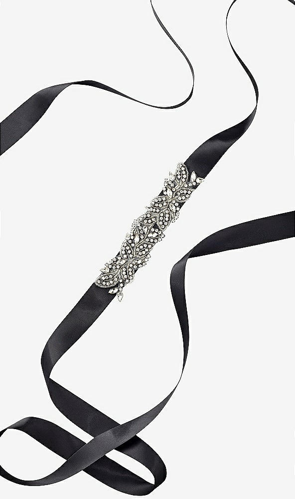Vintage look rhinestone and metallic thread leaf and vine design on a 1" satin ribbon. Sash approximately 84" long and beaded design is approximately 1.5" high.