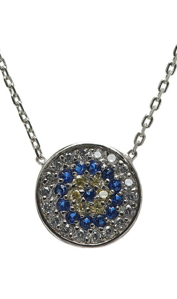Front View - Cubic Zirconia CZ Evil Eye Pendant Necklace