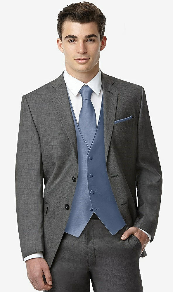 Classic Yarn-Dyed Tuxedo Vest by After Six in Larkspur Blue