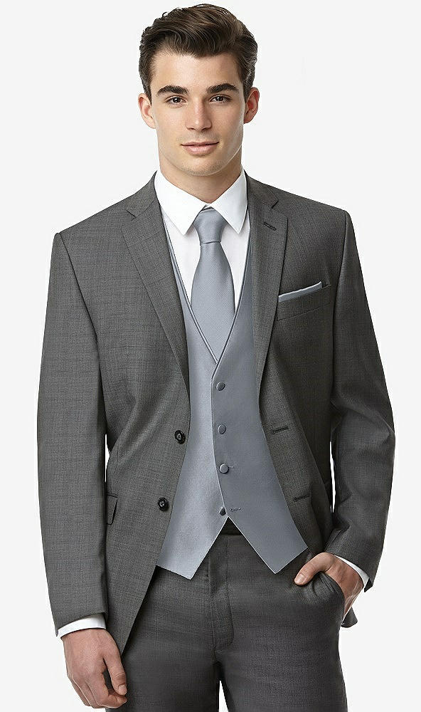 Classic Yarn-Dyed Tuxedo Vest by After Six in Platinum
