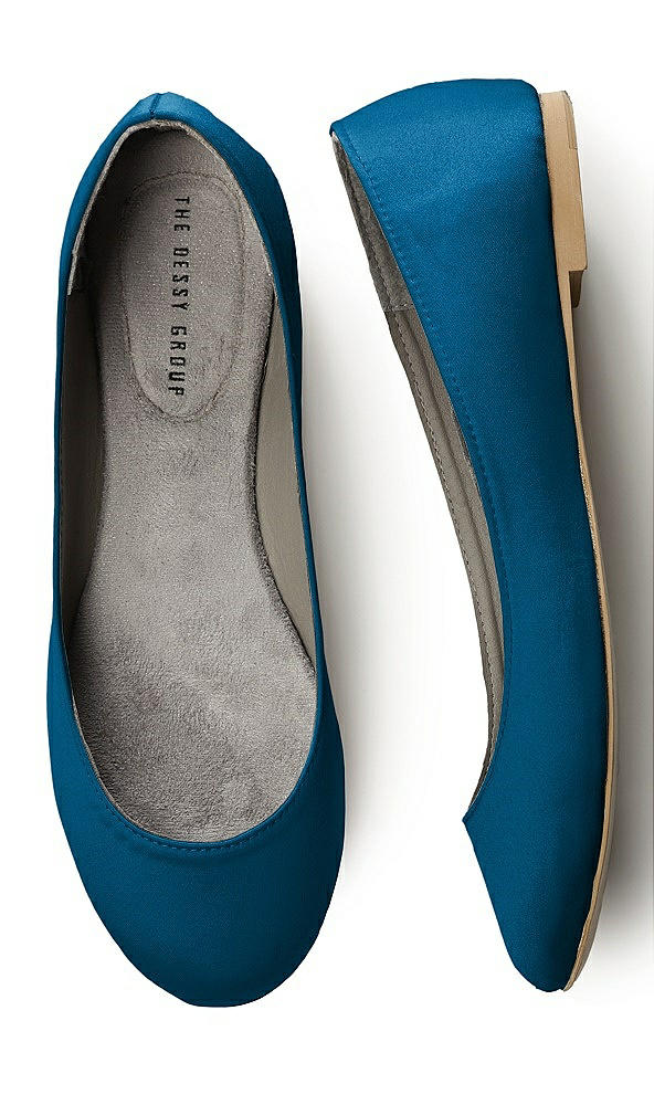Simple Satin Ballet Wedding Flats in Ocean Blue