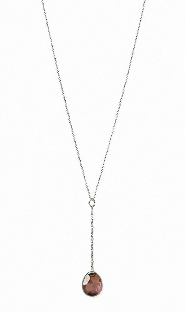 Faceted rhodolite cubic zirconia pendant y-necklace set in high polish sterling.
