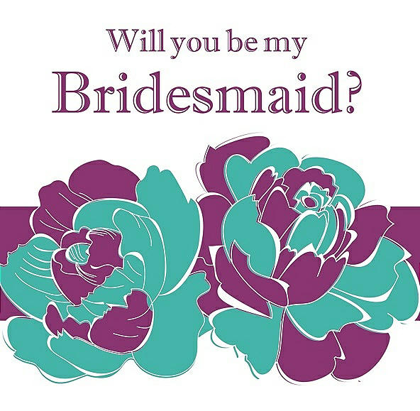Will You Be My Bridesmaid Card - 2 Color Flowers in Pantone Turquoise & Persian Plum