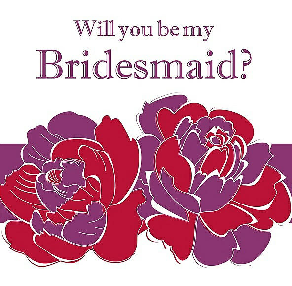 Will You Be My Bridesmaid Card - 2 Color Flowers in Flame & Persian Plum