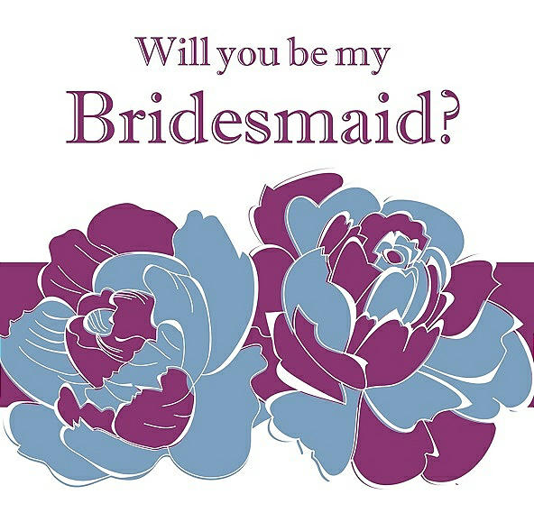 Will You Be My Bridesmaid Card - 2 Color Flowers in Windsor Blue & Persian Plum