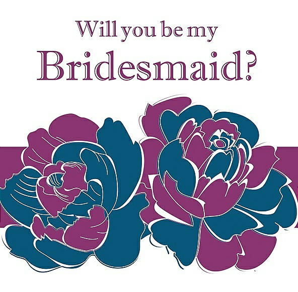 Will You Be My Bridesmaid Card - 2 Color Flowers in Ocean Blue & Persian Plum