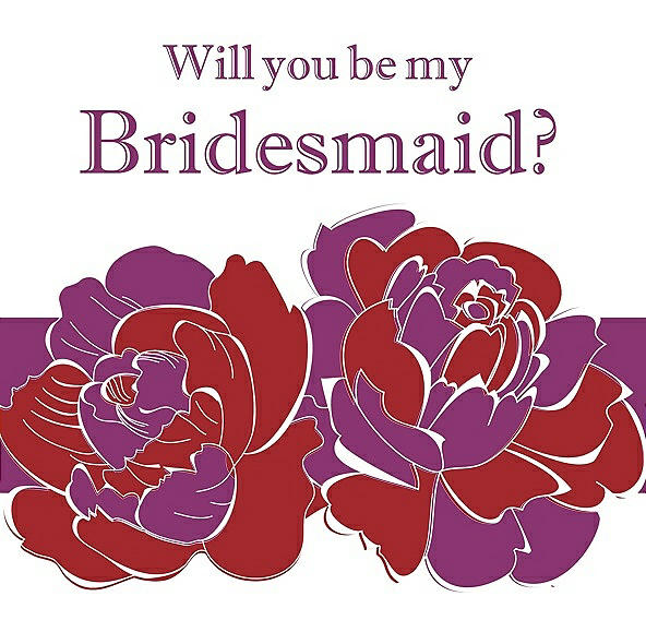Will You Be My Bridesmaid Card - 2 Color Flowers in Ribbon Red & Persian Plum
