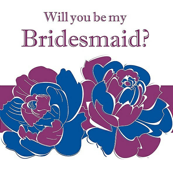 Will You Be My Bridesmaid Card - 2 Color Flowers in Royal Blue & Persian Plum