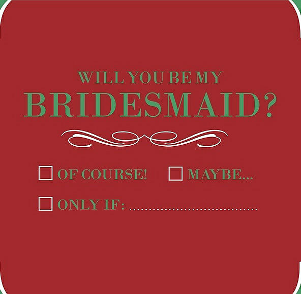 Will You Be My Bridesmaid Card - Checkbox in Ribbon Red & Juniper