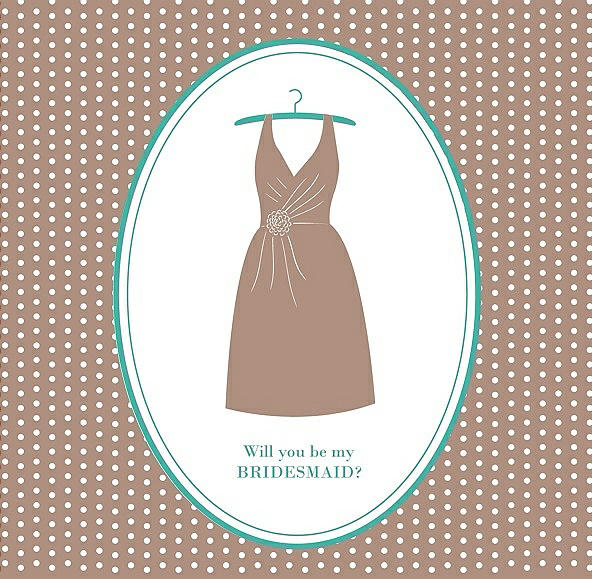 Will You Be My Bridesmaid Card - Dress in Cappuccino & Pantone Turquoise