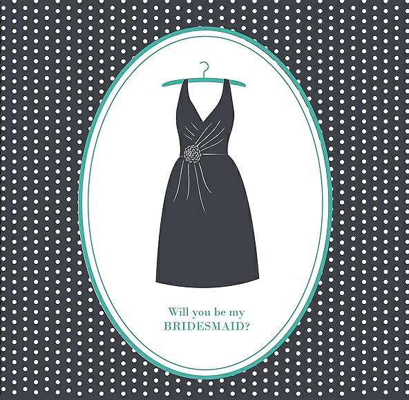 Will You Be My Bridesmaid Card - Dress in Ebony & Pantone Turquoise