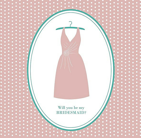 Will You Be My Bridesmaid Card - Dress in Rose & Pantone Turquoise