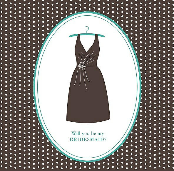 Will You Be My Bridesmaid Card - Dress in Chocolate & Pantone Turquoise