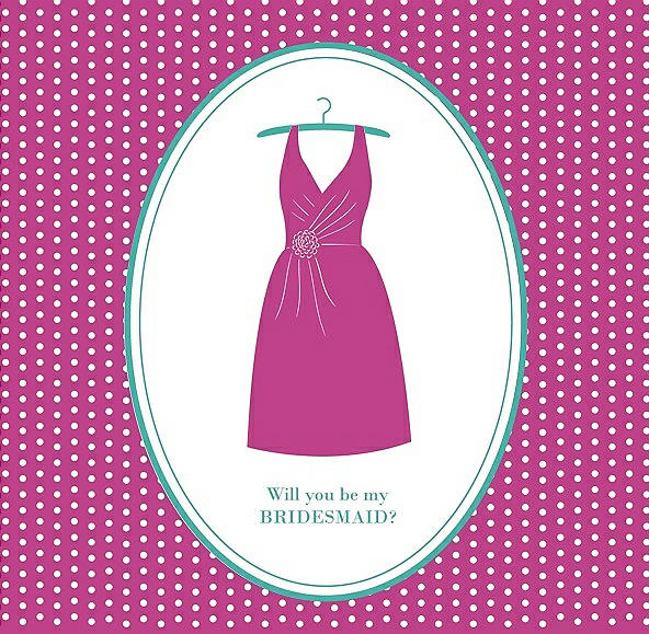 Will You Be My Bridesmaid Card - Dress in American Beauty & Pantone Turquoise