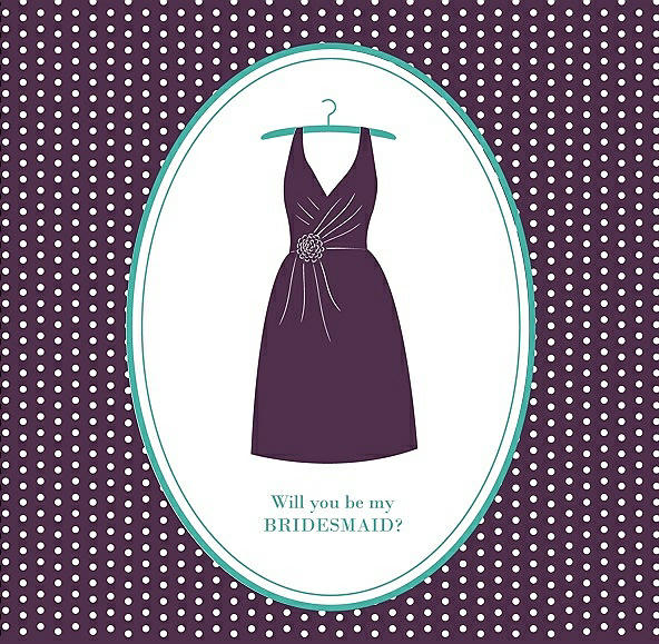 Will You Be My Bridesmaid Card - Dress in Aubergine & Pantone Turquoise