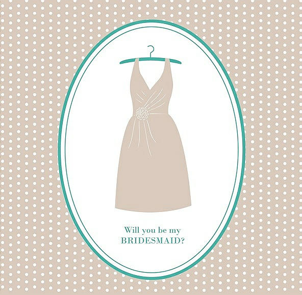 Will You Be My Bridesmaid Card - Dress in Cameo & Pantone Turquoise