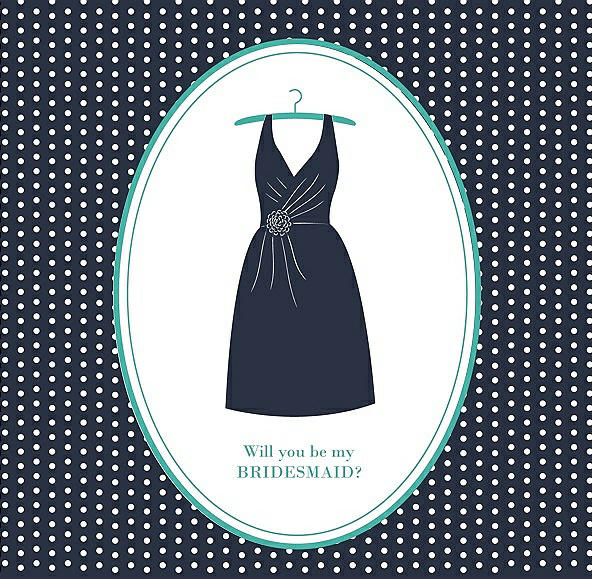 Will You Be My Bridesmaid Card - Dress in Midnight Navy & Pantone Turquoise