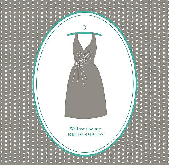 Will You Be My Bridesmaid Card - Dress in Mocha & Pantone Turquoise