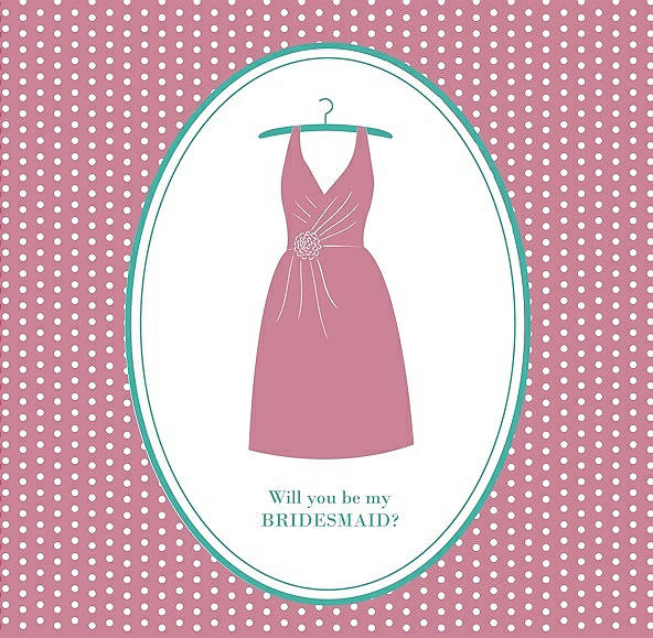Will You Be My Bridesmaid Card - Dress in Carnation & Pantone Turquoise