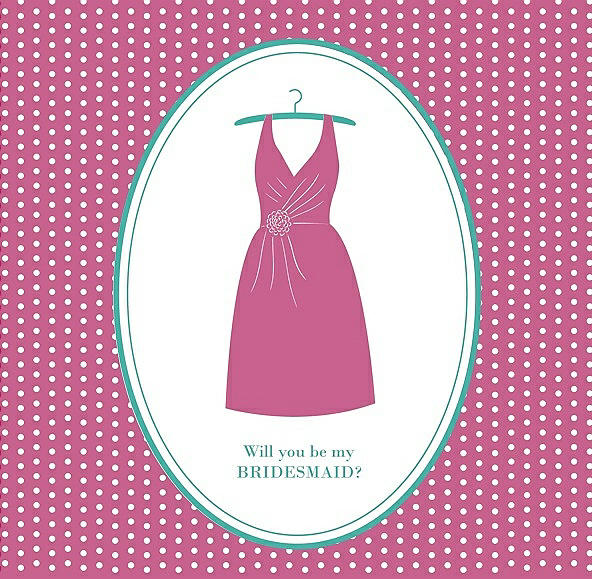 Will You Be My Bridesmaid Card - Dress in Pretty In Pink & Pantone Turquoise