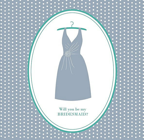 Will You Be My Bridesmaid Card - Dress in Platinum & Pantone Turquoise
