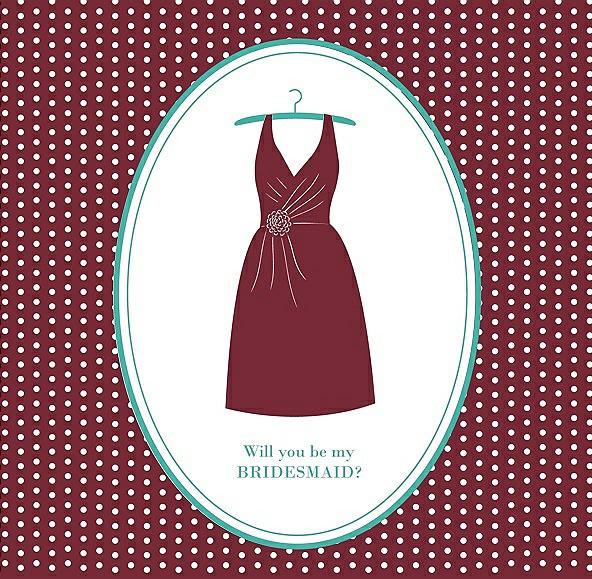Will You Be My Bridesmaid Card - Dress in Burgundy & Pantone Turquoise