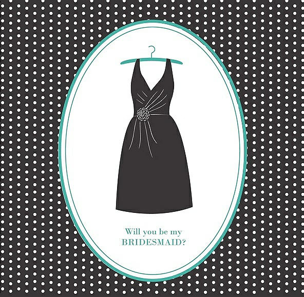 Will You Be My Bridesmaid Card - Dress in Graphite & Pantone Turquoise