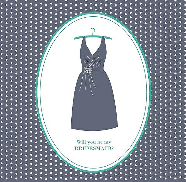 Will You Be My Bridesmaid Card - Dress in Blue Steel & Pantone Turquoise