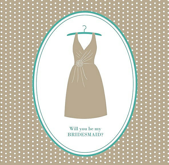 Will You Be My Bridesmaid Card - Dress in Champagne & Pantone Turquoise