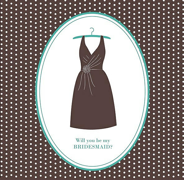 Will You Be My Bridesmaid Card - Dress in Drift Wood & Pantone Turquoise