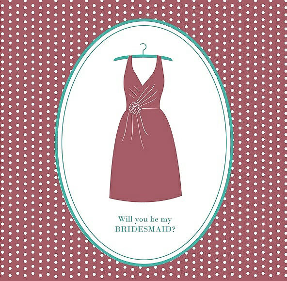 Will You Be My Bridesmaid Card - Dress in Spanish Rose & Pantone Turquoise