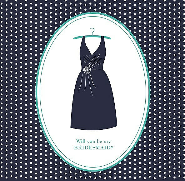 Will You Be My Bridesmaid Card - Dress in Navy Blue & Pantone Turquoise