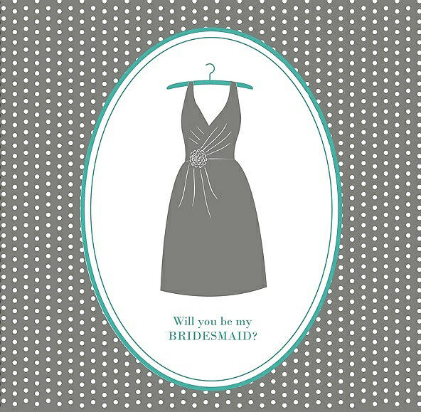 Will You Be My Bridesmaid Card - Dress in Charcoal Gray & Pantone Turquoise