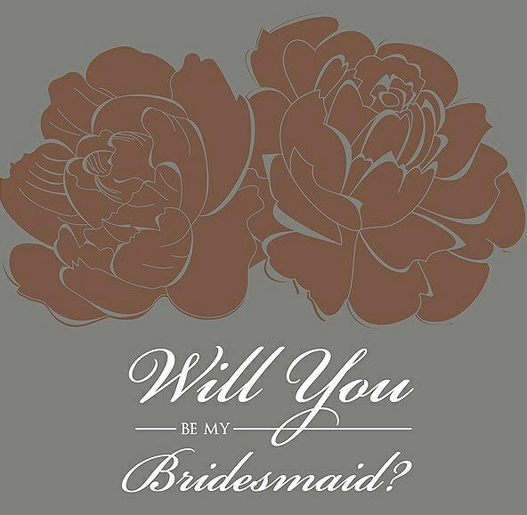 Will You Be My Bridesmaid Card - Flowers in Almond & Charcoal Gray