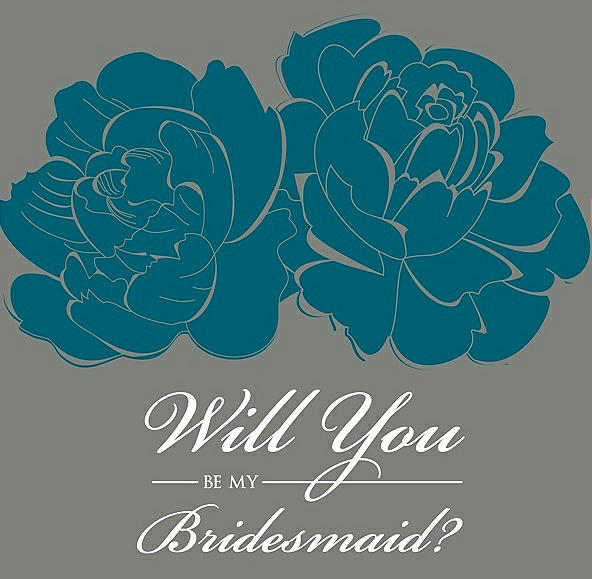 Will You Be My Bridesmaid Card - Flowers in Caspian & Charcoal Gray