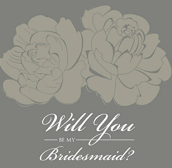 Will You Be My Bridesmaid Card - Flowers in Twig & Charcoal Gray