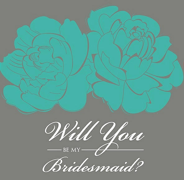 Will You Be My Bridesmaid Card - Flowers in Pantone Turquoise & Charcoal Gray
