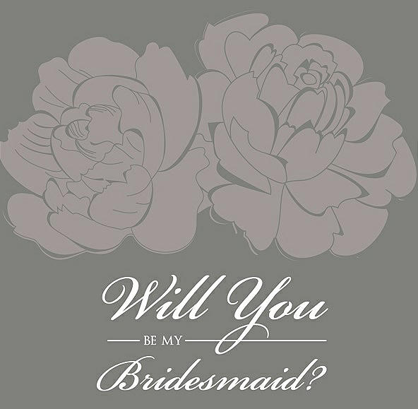 Will You Be My Bridesmaid Card - Flowers in Taupe & Charcoal Gray