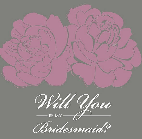 Will You Be My Bridesmaid Card - Flowers in Rosebud & Charcoal Gray