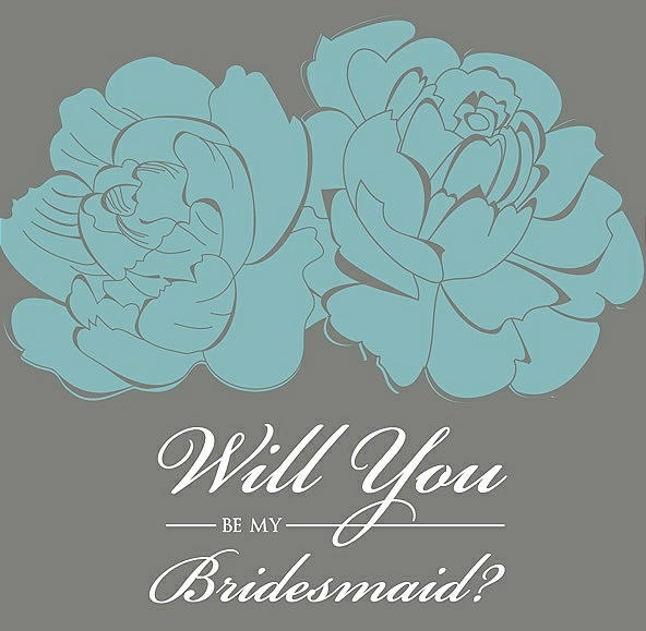 Will You Be My Bridesmaid Card - Flowers in Seaside & Charcoal Gray