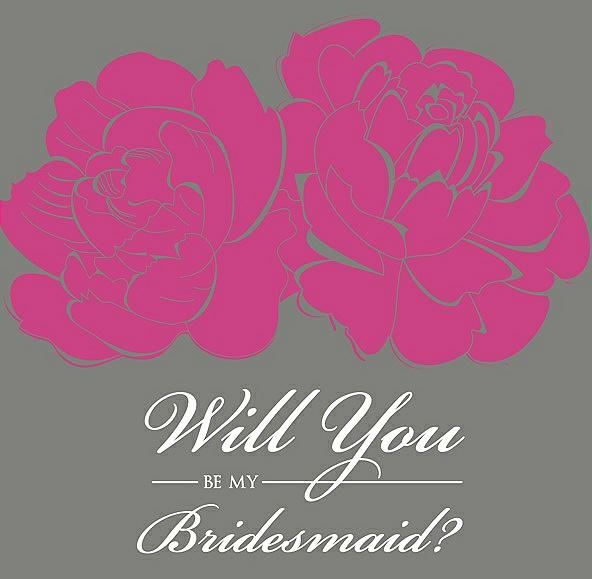 Will You Be My Bridesmaid Card - Flowers in Fuchsia & Charcoal Gray