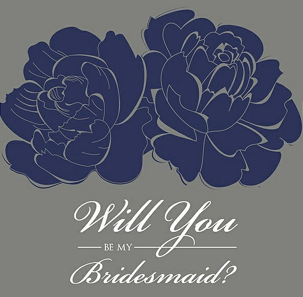 Will You Be My Bridesmaid Card - Flowers in Blueberry & Charcoal Gray