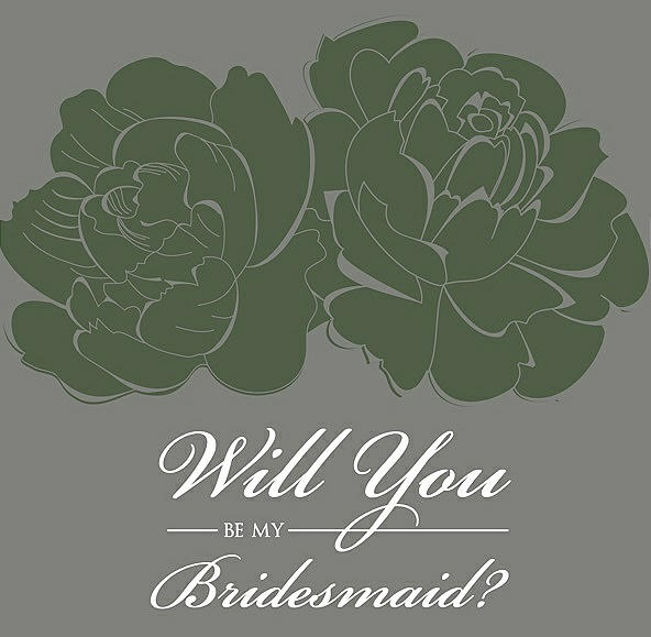 Will You Be My Bridesmaid Card - Flowers in Moss & Charcoal Gray