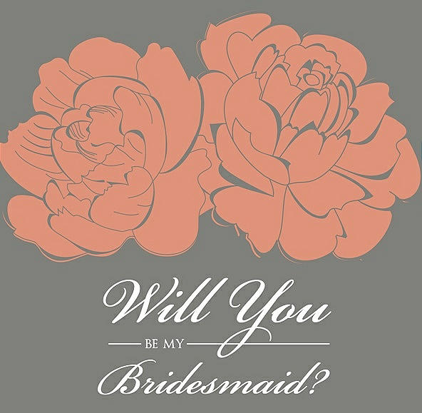 Will You Be My Bridesmaid Card - Flowers in Tangerine & Charcoal Gray
