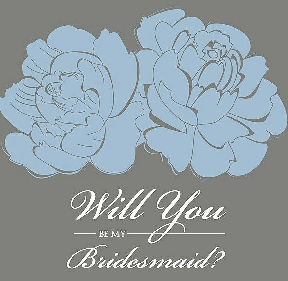 Will You Be My Bridesmaid Card - Flowers in Pale Blue & Charcoal Gray