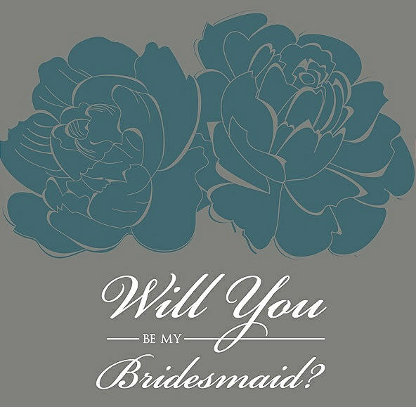 Will You Be My Bridesmaid Card - Flowers in Teal & Charcoal Gray