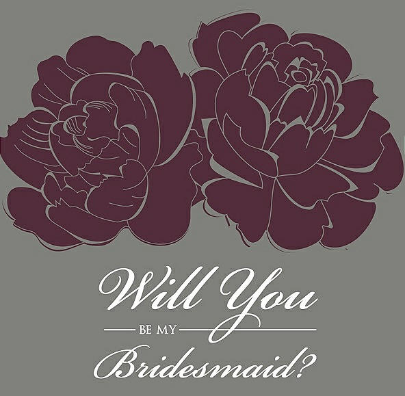 Will You Be My Bridesmaid Card - Flowers in Bordeaux & Charcoal Gray